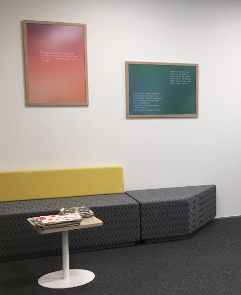 3D Lettering on the desk 3D full colour printed circles appled to wall